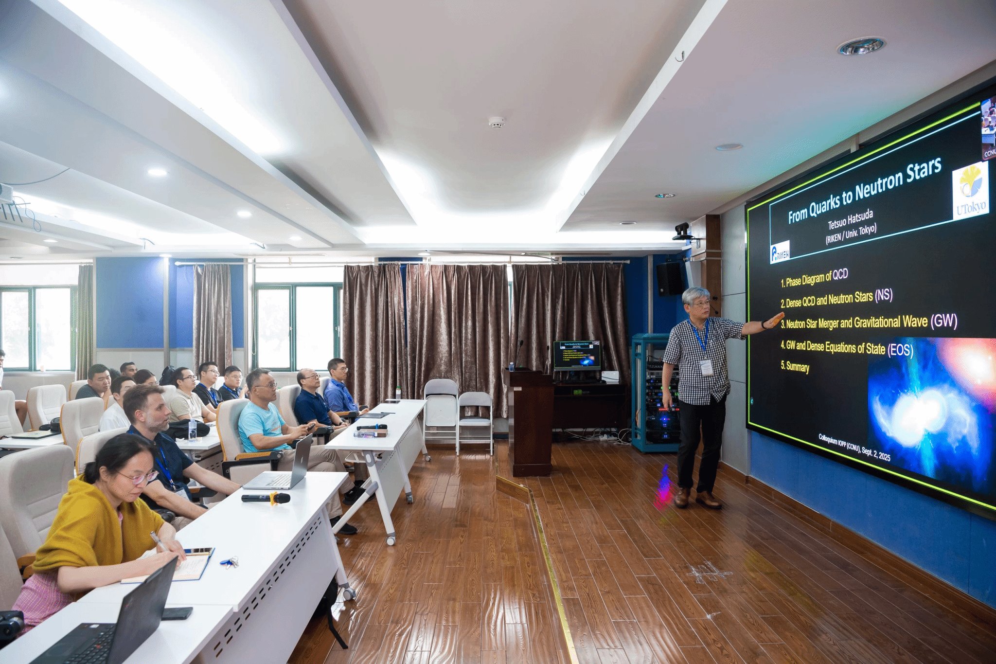 工作周期间来自清华大学、CERN、日本RIKEN研究所、美国杜克大学、范德堡大学、加州大学伯克利分校、德国海德堡大学、法兰克福高等研究院、波兰华沙理工大学、香港中文大学(深圳)、复旦大学、华中师范大学等单位的教授、年轻学者做了26场专题报告。其中,日本理化研究所(RIKEN)的Tetsuo Hatsuda教授还在9月2日在粒子物理研究所的首届IOPP Colloquium向全所师生做了题为《从夸克到中子星》的讲座,深入探讨了强相互作用物质在不同尺度下的行为特征,引发热烈讨论。