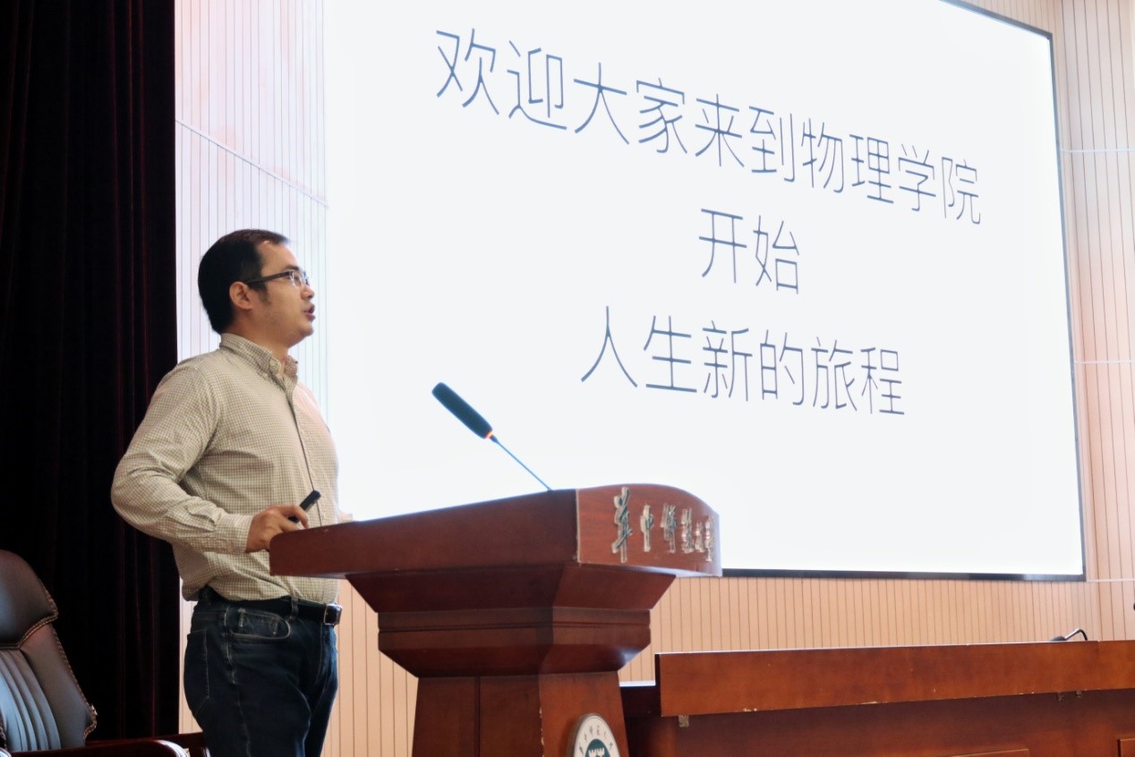 张本威院长对加入物院大家庭的新生学子表示欢迎。他和同学们分享了学院的发展历程,介绍了学院在学科建设、科学研究、人才培养和国际合作等方面取得的成就,勉励同学们刻苦学习,为实现学院各项事业取得更大成就不懈努力。同时,张院长对新生们提出了三点希望和建议:一是希望同学们能够勇于探索,不怕跌倒,寻找到自己的路,找到自己的生存意义并终身坚守;二是希望同学们尽力过好每一天,做到自己能力所及的最佳,体现自己的人生价值,获得属于自己的成功;三是希望同学们多读书,读好书,在学好专业知识的同时,涉猎文学、哲学等书籍,在书中体味人生。最后,张院长以俄国诗人莱蒙托夫诗中对人生的比喻作结,希望2020级新生能坚定理想,不懈追求,走好自己的人生之路。