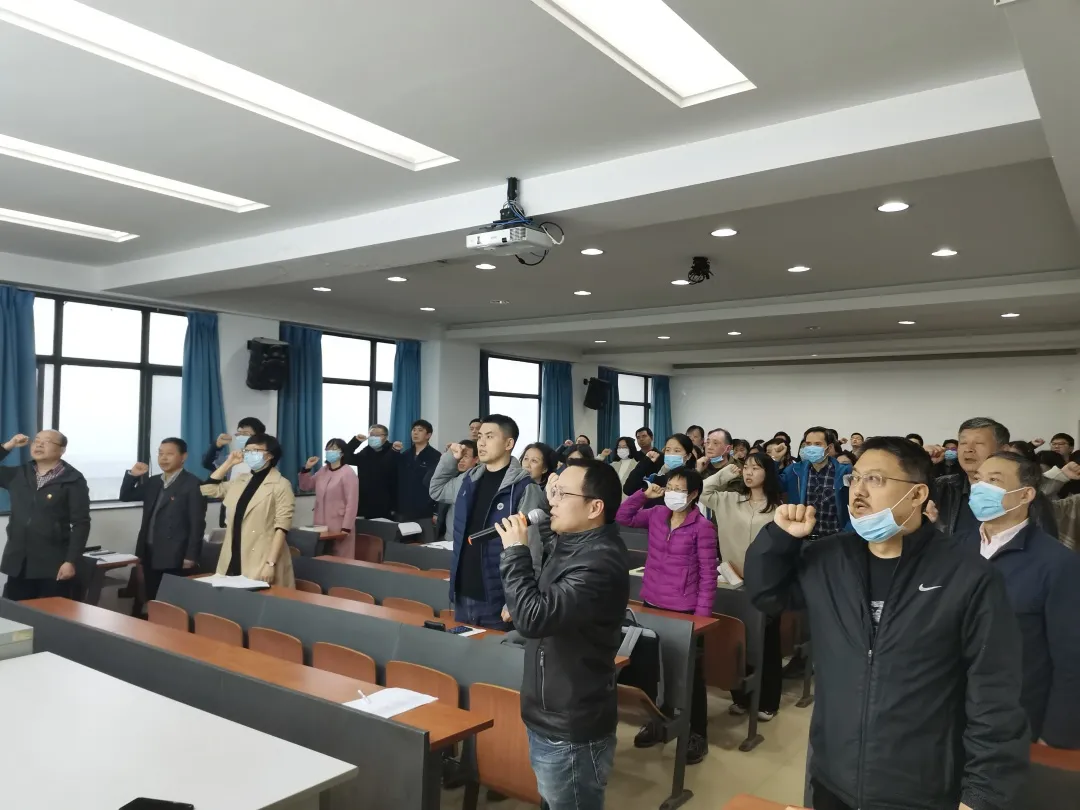 会议第四项,在学院物理教工支部书记俞云伟的领誓下,各位党员重温入党誓词,再次接受了心灵的洗礼,牢记作为共产党员的政治责任、工作担当和光荣使命。