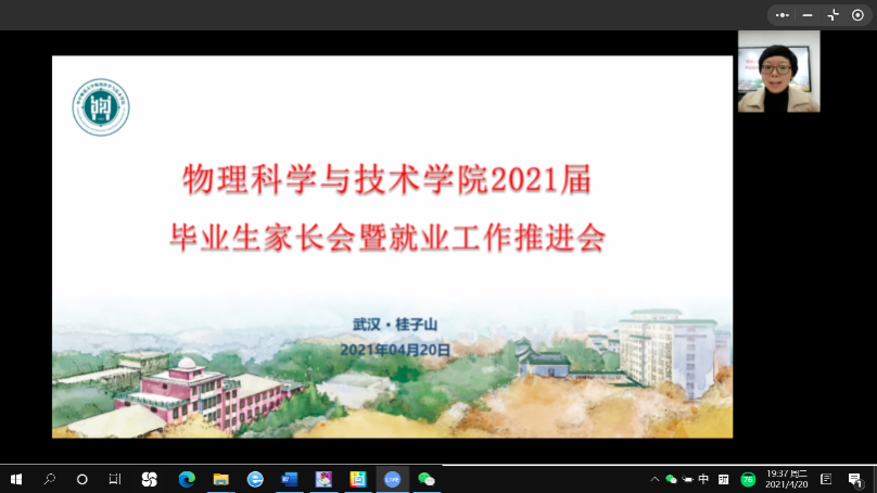 随后,马英就物理学院2021届毕业生就业的相关情况进行了介绍。马书记向与会的家长和毕业生通报了2021届毕业生面临的就业形势和学院近三年毕业生的基本就业情况;介绍了学院在过去针对2021届毕业生所做的大量细致工作以及将要开展的精准帮扶的工作。希望家长和毕业生在严峻的就业形势下,能转变观念,适度调整就业期望值,希望同学们能通过实践提升自己的应聘能力。最后,提醒家长和学生注意毕业季的安全和健康问题。