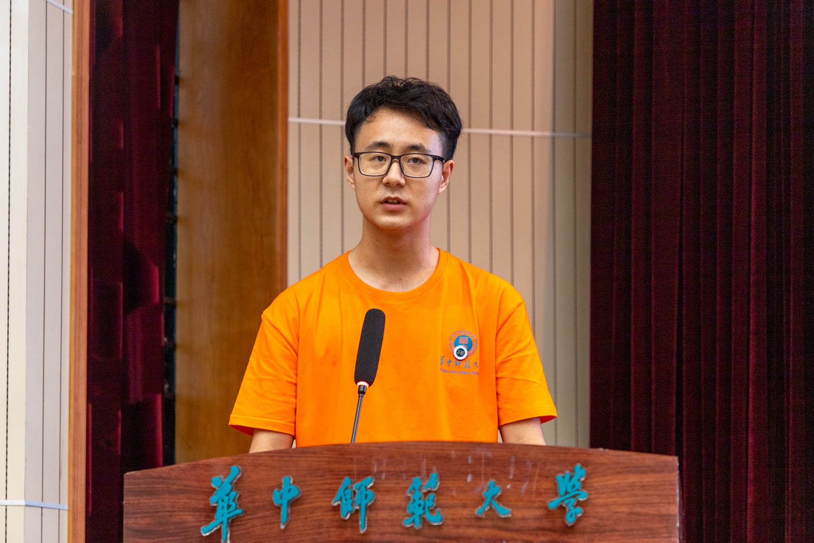 2018级物理学基地班沈吾栋同学作为老生代表发言。沈吾栋同学在校期间曾获校三好学生标兵,全国大学生物理学术竞赛三等奖等国家级和省级奖励5项,并作为主力队员代表学院男篮参加校“文华杯”篮球赛连续两年获得冠军。作为学长,他与大家分享了“如何将大学过得精彩”。他谈到,个人选择在大学生活中非常重要,科研学习、学生活动、社会实践等都会是不负韶华的添彩经历。学院的专业课程兼具难度和深度,且课程间往往具有很强的连贯性与承接性。想跟上老师上课的进度,课前预习、课后认真完成作业、遇到不懂的问题多和老师同学沟通等都是非常重要的学习方法。