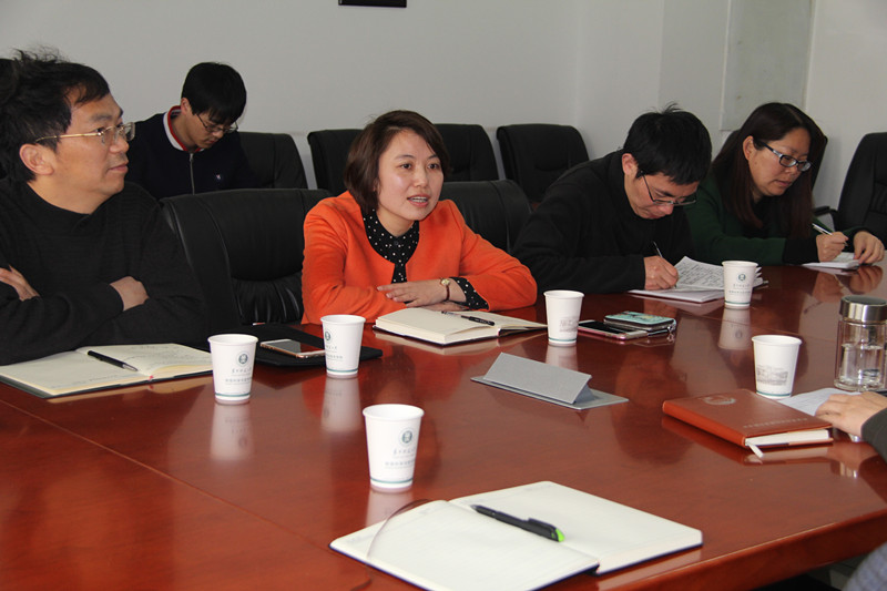 我院党委副书记吴建成首先就学院宣传思想工作、学院文化建设等工作的开展情况及相关思考进行了汇报。她从强化思想引领、完善激励机制、树立典型人物、拓宽网络宣传思想阵地四个方面介绍了我院近年来宣传思想工作进展情况,同时从如何完善学校宣传思想阵地建设和管理、提高教师及学生参与度、加强各部门间联动协作提出了对加强和改进学校宣思想工作的思考。校园文化建设方面,吴书记介绍了我院在物质文化、制度文化、活动文化及精神文化四个方面的建设情况,并从加强校园特色物质文化建设、推进法治校园、加强典型宣传旋律导向,提升精神文化建设高度三个方面表达了对加强校园文化建设的思考。吴书记建议可以从点、线、面三个层面加强校园典型宣传工作,并用“思想政治教育是本位,凝聚共识是基础,管好用好是重点”三句话表达了对构建学校大宣传格局的思考。