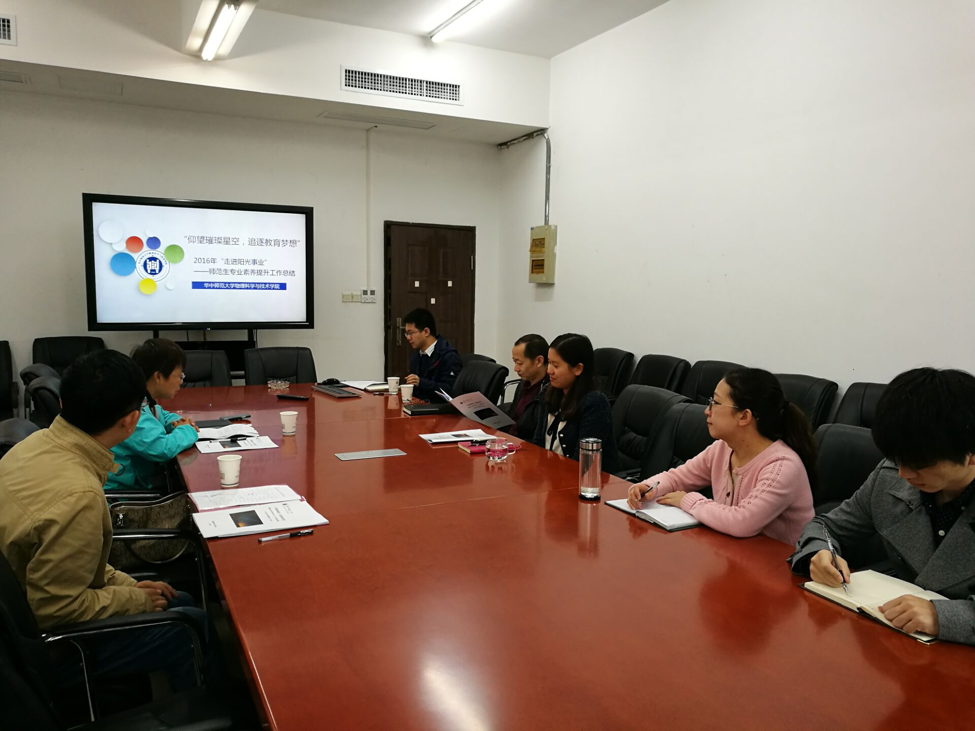 刘守印副院长对学院师范生的培养情况作了全面的介绍。刘院长说,2008年开始,学院就已经开始实施“走进阳光事业”师范生专业能力提升计划,在师范生专业能力训练方面已经形成了涵盖师范生技能培训,师范生讲座、师范生技能比赛和师范生教学实习等方面为一体的师范生专业能力提升培养体系。在这种培养体系下,学院师范生的教师素养和教学技能有了较为明显的提升。