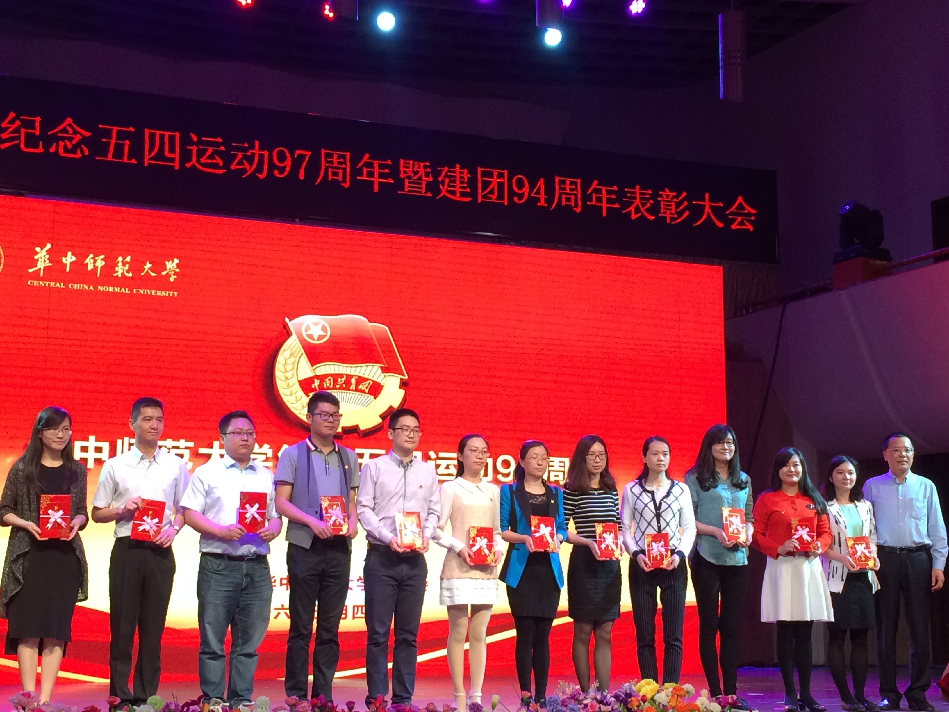 (通讯员 成云)5月4日下午,华中师范大学纪念五四运动97周年暨建团94周年表彰大会在我校音乐厅隆重举行。本次表彰大会由我校校团委举办。我院党委书记陈迪明、党委副书记吴建成、团委书记刘倩以及优秀学生代表等出席了此次大会。