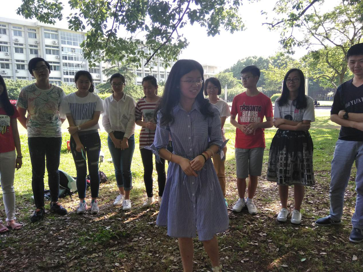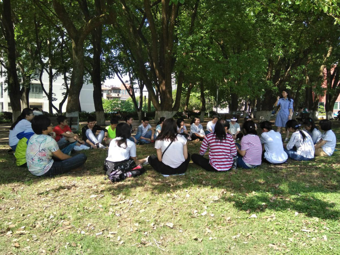 2017年5月13日下午3点,阳光和煦,轻飔拂面,在博雅广场郁郁青青的草地上,华中师范大学物理科学与技术学院辅导员严心彤老师与大一年级学生包括年级学生会部分成员一起参与了“轻轻松松交朋友”交流活动。