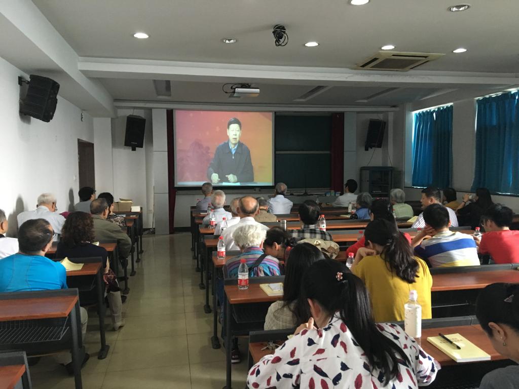会上,全体参会党员现场学习了“学做统一,做‘四讲四有’的合格党员”专题课程视频。一个小时的专题学习,让在场的退休教师党员、在职教师党员和学生党员都收获颇丰。