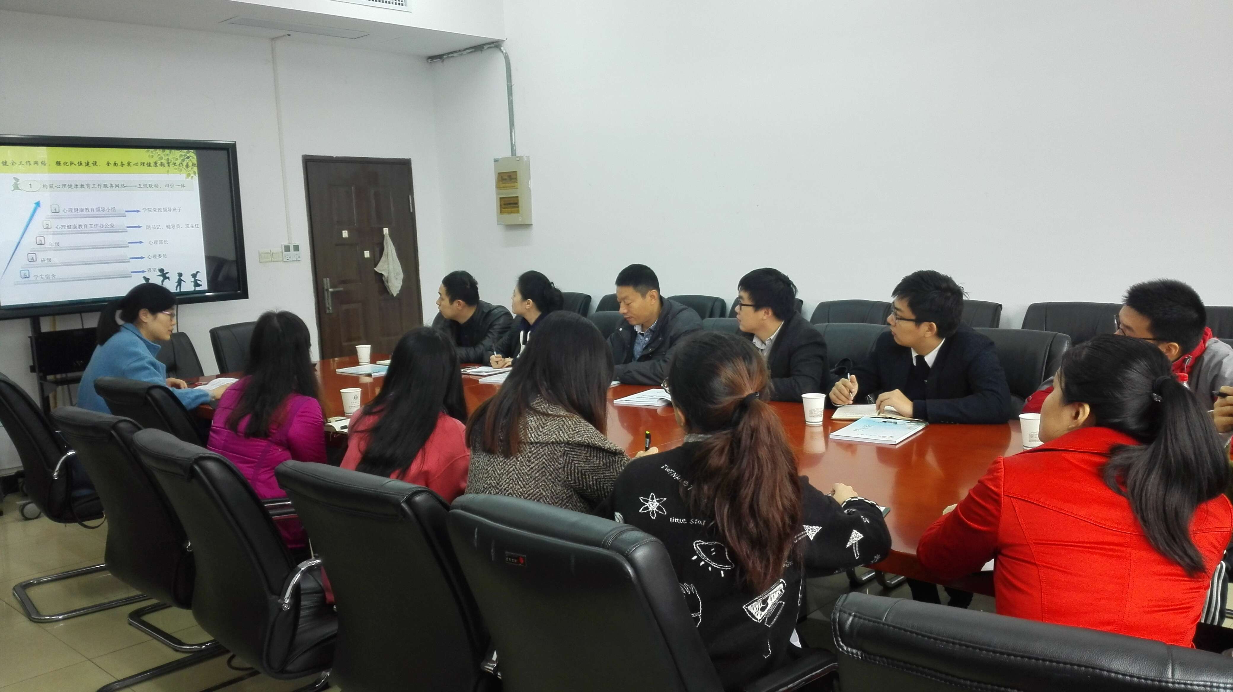 交流会开始,吴建成副书记对武汉大学水利水电学院学工组一行的到来表示热烈的欢迎,并一一介绍了我院学工组成员及各自负责的工作。学院心理健康教育联系人刘倩老师从强化队伍建设,完善工作制度,搭建服务平台,打造品牌活动五个方面全面介绍了我院心理健康教育工作的开展情况。随后,双方就心理危机事件处理、学生心理委员培养、特色活动品牌的建设等方面的情况进行了深入的交流。