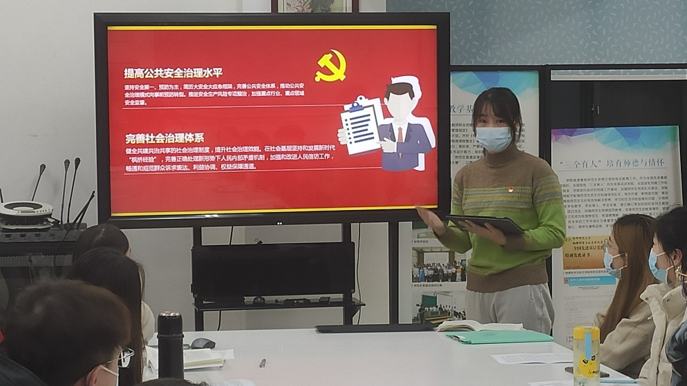 党支部成员依次对二十大报告进行了学习分享。杨洋同志就健全国家安全体系说道:要谨防一些手机软件对个人信息的过分收集,这不仅关系个人隐私安全,还破坏国家网络安全和数据安全。丁宇珊同志就绿色发展提到:要从自身做起,绿色低碳出行,节约水电资源,坚持垃圾分类,向着更美好的未来稳步迈进。