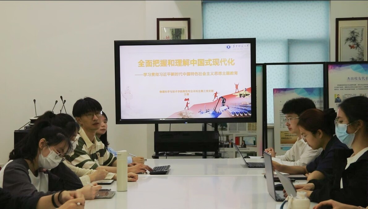 5月25日晚,物理科学与技术学院师范专业本科生第三党支部书记王棣以“全面把握和理解中国式现代化”为题,为支部全体党员讲党课。