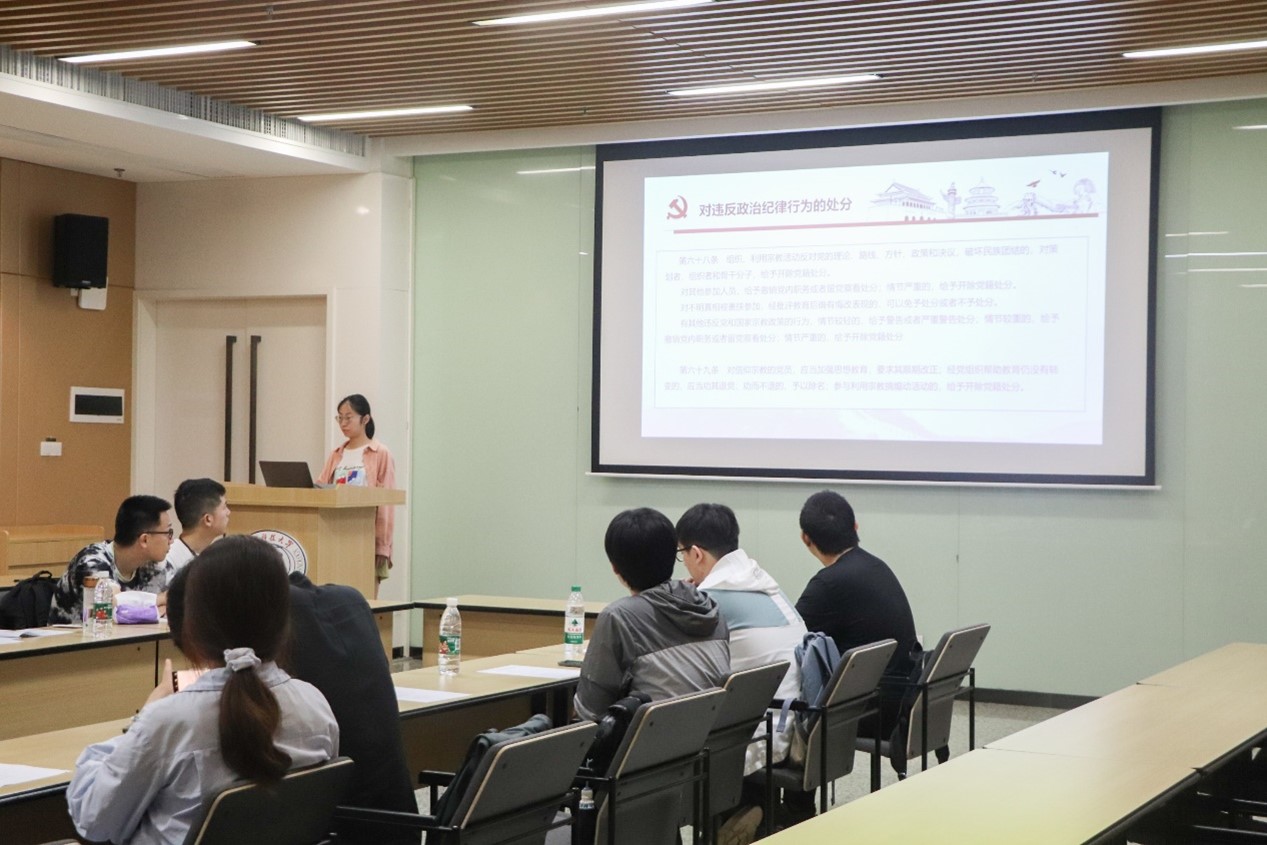 活动伊始,两校学生党员共同学习了习近平总书记关于党的纪律建设的重要论述。集成电路学院微电子专业本科生党支部李玉晗同志围绕“习近平‘典’论全面加强党的纪律建设”这一主题,深入剖析了党的纪律建设的重大意义,并结合实际案例学习《中国共产党纪律处分条例》中关于违反政治纪律和组织纪律的处分规定。
