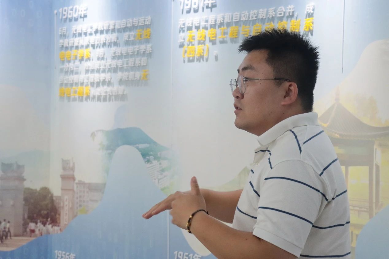 活动伊始,支部成员前往电子信息与通信学院展示厅参观学习,赵广超老师以电信学院学科的发展历程为主线,为大家介绍了学院学科概况、师资力量及主要研究方向等内容。