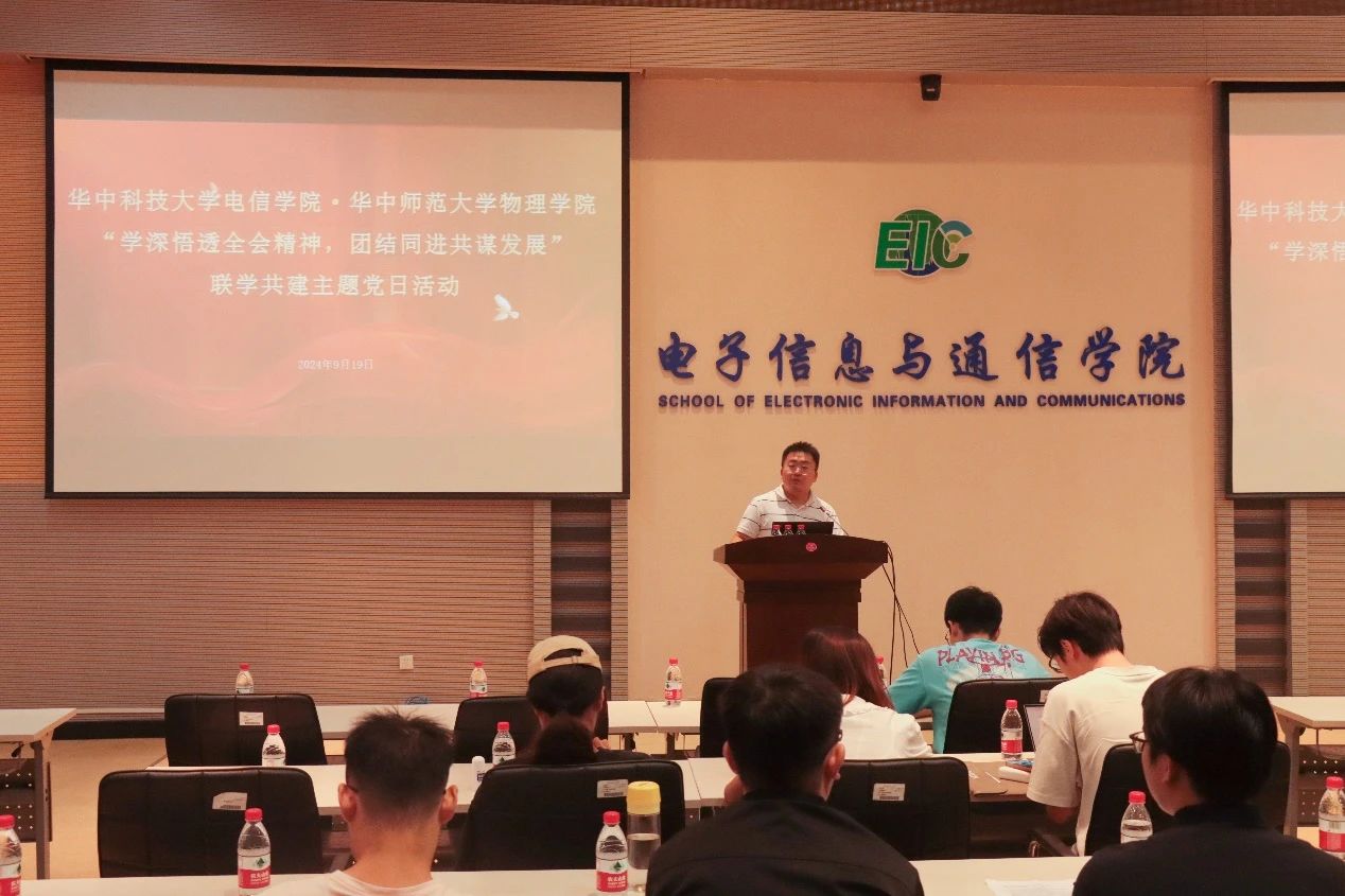 为了提高支部党员理论水平、凝聚支部力量、促进各支部间交流,9月19日下午,学院非师范专业本科生第二党支部前往华中科技大学电子信息与通信学院开展“学深悟透全会精神,团结同进共谋发展”联学共建主题党日活动。本次活动由华中科技大学电子信息与通信学院辅导员赵广超主持,包括参观电信学院展厅、华中科技大学电信学院介绍、学生党支部建设经验交流及理论学习等。