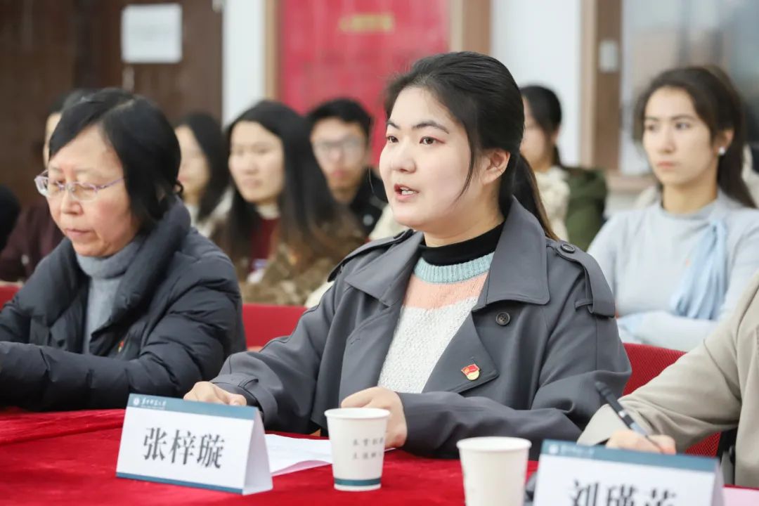 支部学生党员代表围绕教育实习与科创竞赛经历分享学习感悟。张梓璇结合教育实习经历,分享了在课堂教学中如何利用科研思维引导实验教学、利用创新实验提高教学效果的思考;丁蔚欣分享了她对教育教学方法的新认识和对“科教融汇”在中学实践的观察见闻;敬智斌介绍了自己参加“挑战杯”比赛的经历和感悟。