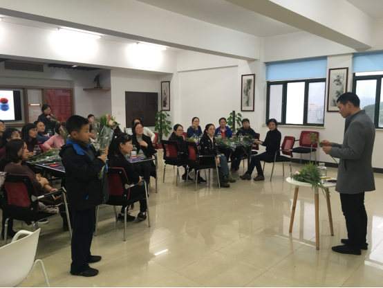 活动举行过程中,插花师首先向大家介绍器皿花艺,并从花瓶的选择、日常的养护、插花技巧等方面详细的讲述了插花的方法。而后,由花艺师为我们现场演示插花的方法和一些注意事项。