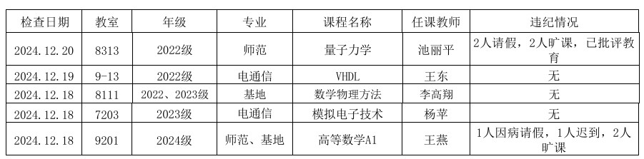 【学风建设】物理科学与技术学院本科生学风检查通报(2024-2025学年第1学期第16周)