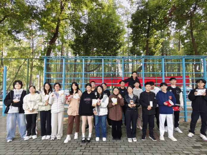 虽然已经到了深秋,但这次同学们组织的体育户外活动很好,阳光很暖,心里也很暖。活动轻松愉快,还有零食和文具作为奖励。同学们轮流上场,旁边同学的鼓励,细碎的叮嘱和笑声混在一起,很轻松的氛围。比赛结束后,大家分享零食,分发文具,聊着刚才比赛时的小插曲。在繁忙的学业的空隙,在广阔的户外,有这样一个简单的下午,是同学间轻松的陪伴。这样简单的互动,比任何刻意的活动都更能拉近彼此的距离,也让这个秋日午后,成了一段难忘的班级回忆。