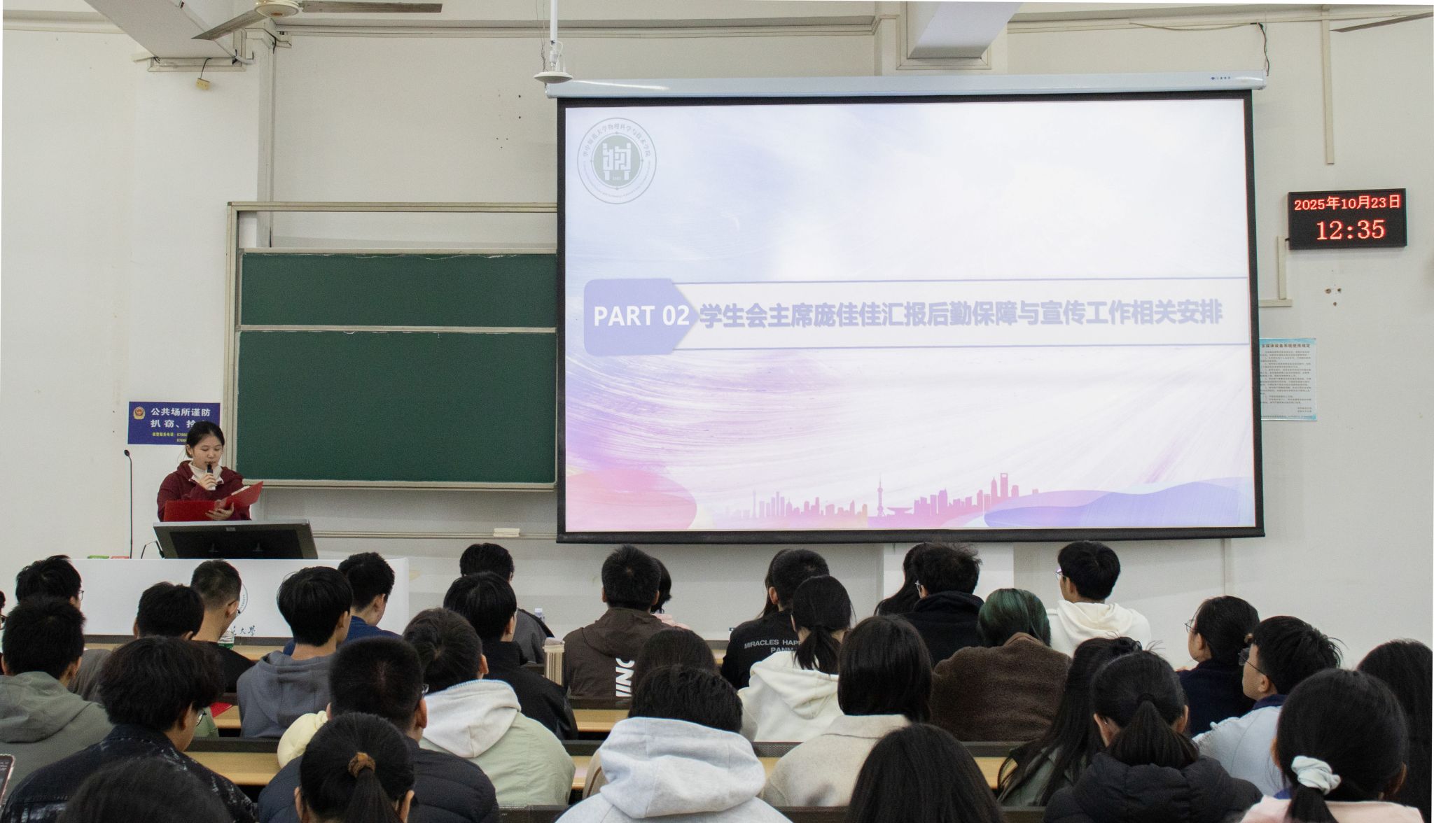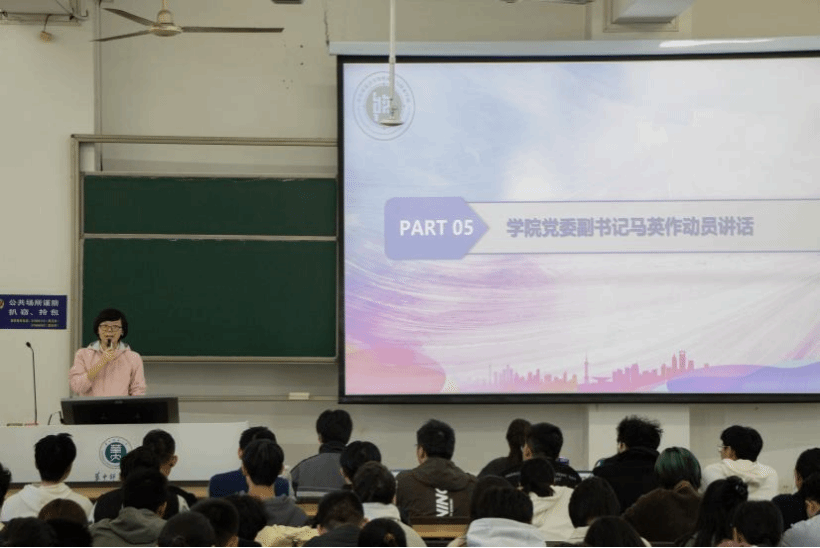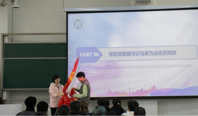 为积极备战即将到来的校运会,激发运动员的拼搏热情,10月23日中午,学院在九号楼9401教室举行了2025年校运会动员大会。学院党委副书记马英、团委书记舒佳欣、团委副书记王润浩,2025级辅导员刘琦与各位运动员共同参与了此次动员会。活动由2025级本科生邹琳璇主持。