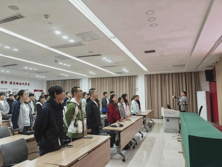 “革命军人个个要牢记,三大纪律八项注意。第一一切行动听指挥,步调一致才能得胜利。”在老师的指导下,同学们学唱经典红歌。嘹亮的歌声回荡在培训课堂,大家分组展示、相互鼓劲,在熟悉的旋律中重温革命岁月,感受红歌中蕴含的团结精神与乐观信念,进一步增强了班级凝聚力与集体荣誉感。