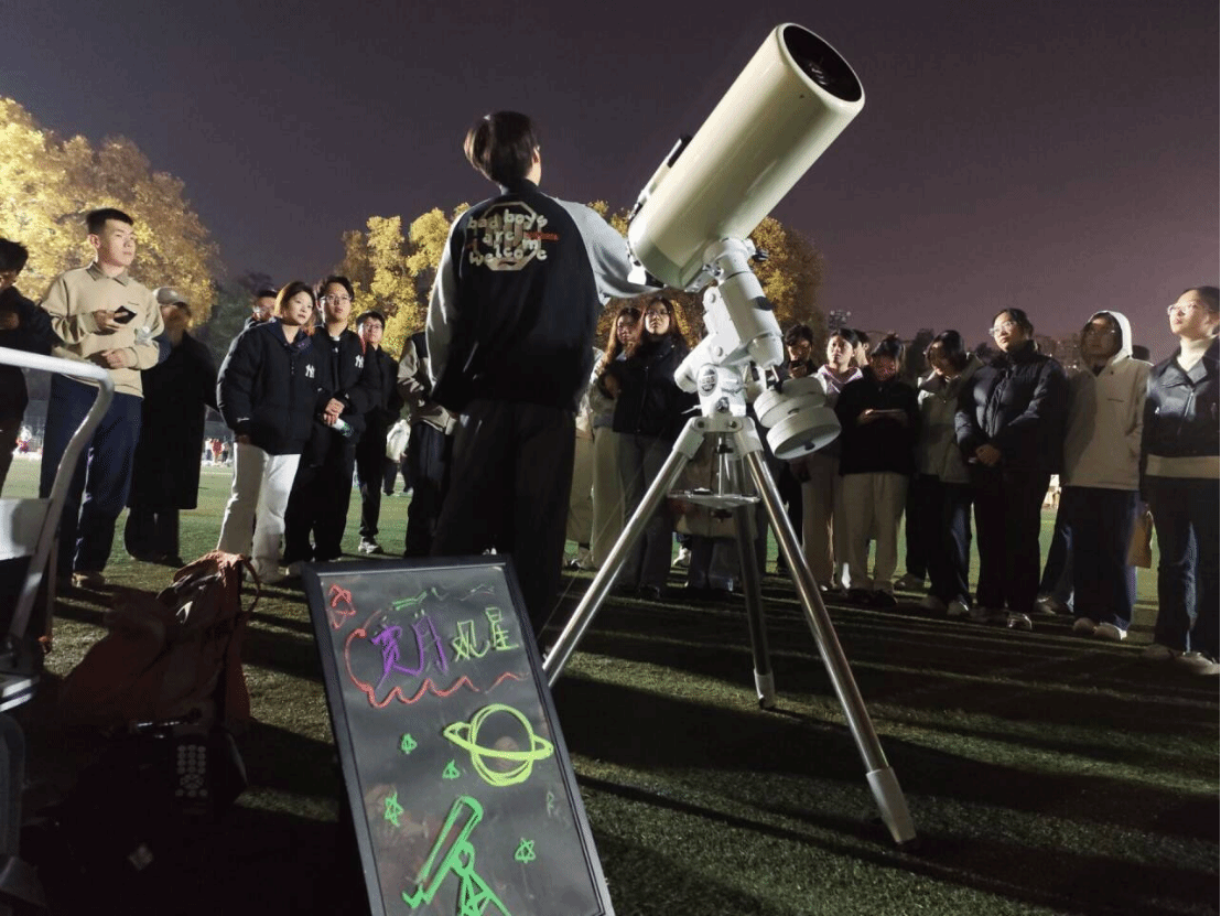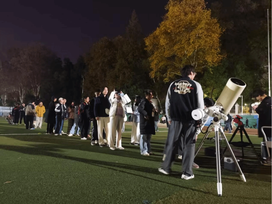 11月28日晚,我院挂靠社团华中师范大学天文爱好者协会(学生)(以下简称“天协”)在佑铭体育场开展了“路边天文”观测活动。活动通过望远镜实地观测与科普讲解相结合的方式,引导同学们亲身体验天文观测的乐趣,掌握基础观测技能,在实践中感受科学魅力,提升综合素质。