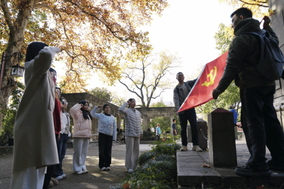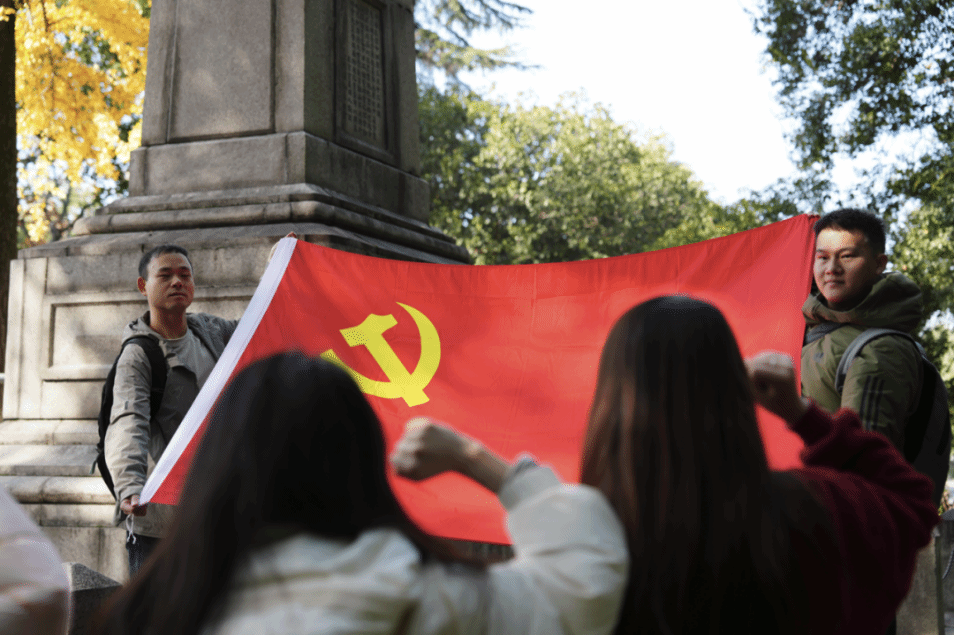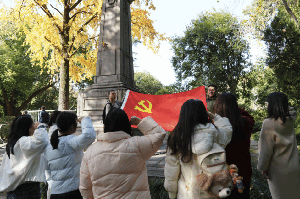 在孙中山纪念碑前,全体党员同志庄严肃立,面向党旗举起右拳,在支部副书记周思雨的带领下重温入党誓词。“我志愿加入中国共产党……”铿锵有力的誓言回荡在纪念碑周围,既是对革命先辈的深切缅怀,也是对初心使命的坚定坚守,进一步凝聚了支部力量,激发了党员同志们的责任感与使命感。
