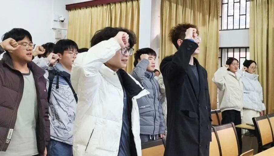 活动最后,全体团员举起右拳,在团支书邹琳璇的带领下庄严宣誓:“我宣誓,忠于中华人民共和国宪法,维护宪法权威,履行法定职责……”铿锵有力的誓言回荡在教室中,既是对法治信仰的郑重承诺,更彰显了团员青年尊法守法、捍卫宪法的坚定决心,让宪法精神真正内化于心、外化于行。