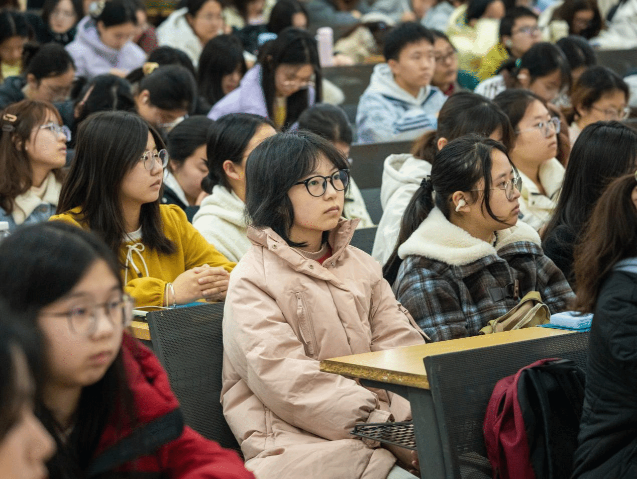 余颖向同学们提出三点期望,鼓励大家认可自身潜能,不必因一时得失焦虑,并寄语女学子打破固有认知,以巾帼力量逐梦。互动环节,同学们围绕学业进展、AI写作等问题提问。余颖教授逐一解答,强调了逻辑思维的核心作用,建议大家善用AI、深耕热爱领域,在坚守与探索中不断成长。