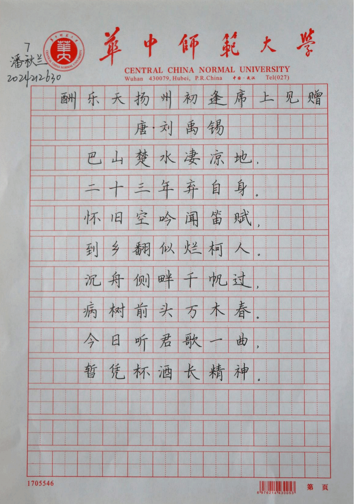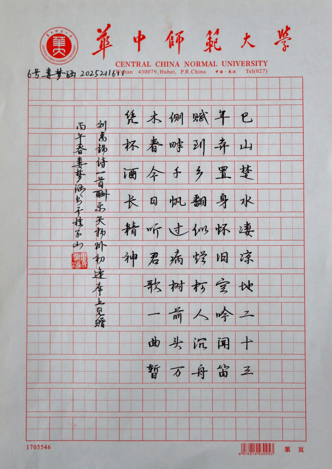 硬笔字赛场,选手们以经典诗词为书写内容,凝神静气、从容落笔。大家在方格之间精心布局,一笔一画尽显功力。作品或刚健工整,或婉转生动,充分展现了师范生扎实的书写素养与良好的临场状态。