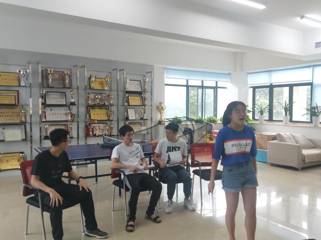介绍完本次团日活动的背景和流程后,刘嫒荣带领同学们回顾五四运动发生的历史背景,尤其是武汉地区的运动情况。接着团员们认真观看由部分成员表演的情景剧《五四惊雷》,这部剧将故事定格在几位华中大学物理系学子身上,讲述一群“无名英雄”在武汉地区的五四运动中抛头颅,洒热血的感人事迹,启发团员们如今的太平盛世是无数的中华儿女不计得失、无私奉献的结果。