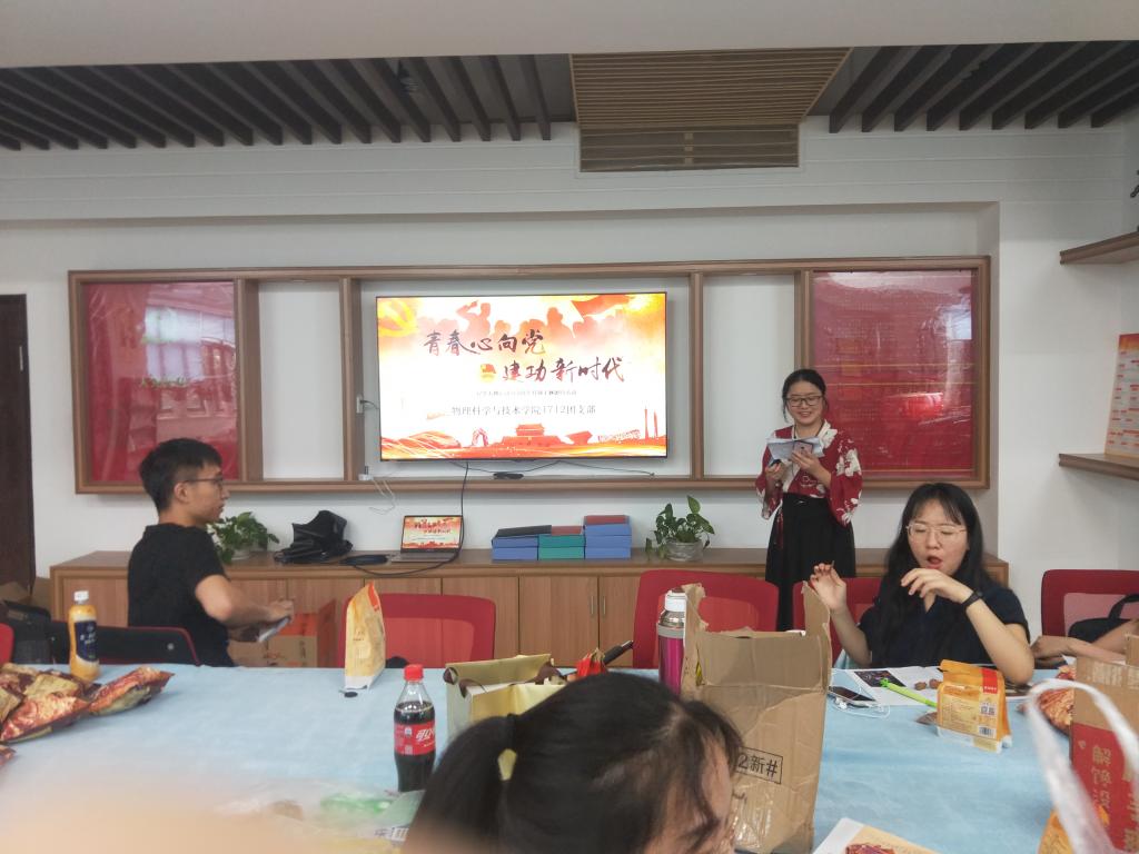 物理科学与技术学院讯(通讯员 刘嫒荣)5月24日下午,物理科学与技术学院1712团支部于9551举办以“青春心向党·建功新时代”为主题的五四特别主题团日活动,旨在庆祝中华人民共和国成立70周年,纪念五四运动100周年。本次活动共分为五个部分,由1712团支书刘嫒荣负责主持。