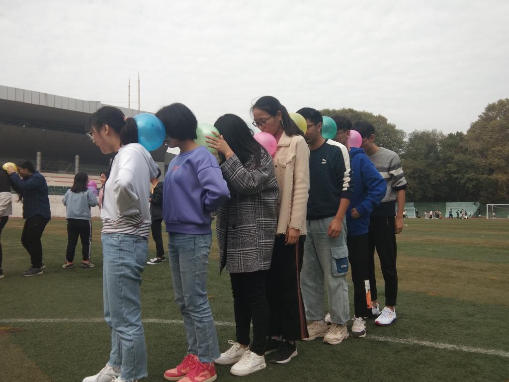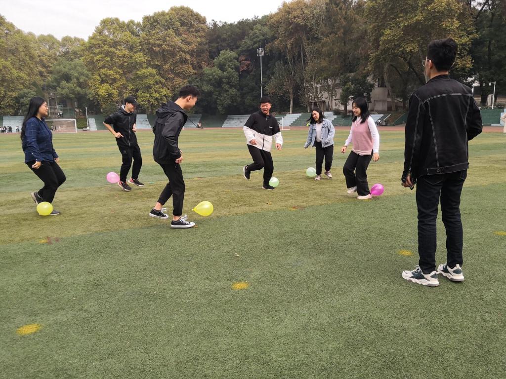 活动第二部分是趣味运动会,由1803班班长陈书鹏主持。同学们分小组在佑铭体育场上先后进行了踩气球、“猴子捞月”、同心协力等团队比拼项目,支部成员们积极参与,共同协作,互相竞争,团日活动的气氛变得欢快起来。成员们在游戏中增进情谊,也锻炼了团队协作能力,提高了支部的凝聚力。