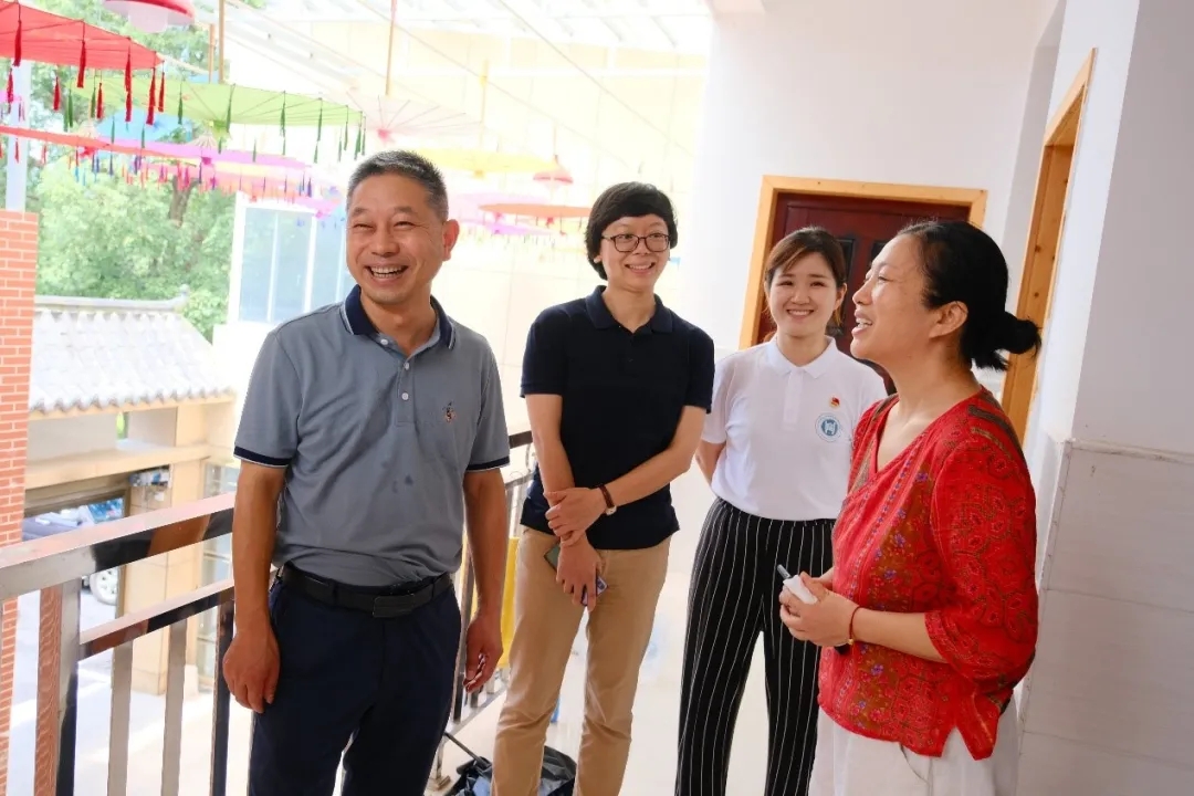 上午10时许,张明生和马英在实践队指导老师高玉茜的陪同下对实践队的教学情况进行了考察。此时,实践队队员张灏正给“希望家园”的40余名孩子上《物质分类》课程,张明生和马英在门外驻足观看。张明生询问了上课学生们的年龄分布和学习情况,鼓励同学们上课认真听讲,希望实践队队员们好好备课,针对村里孩子的兴趣和特点开展形式多样的课堂教学。