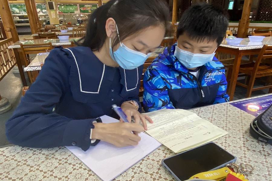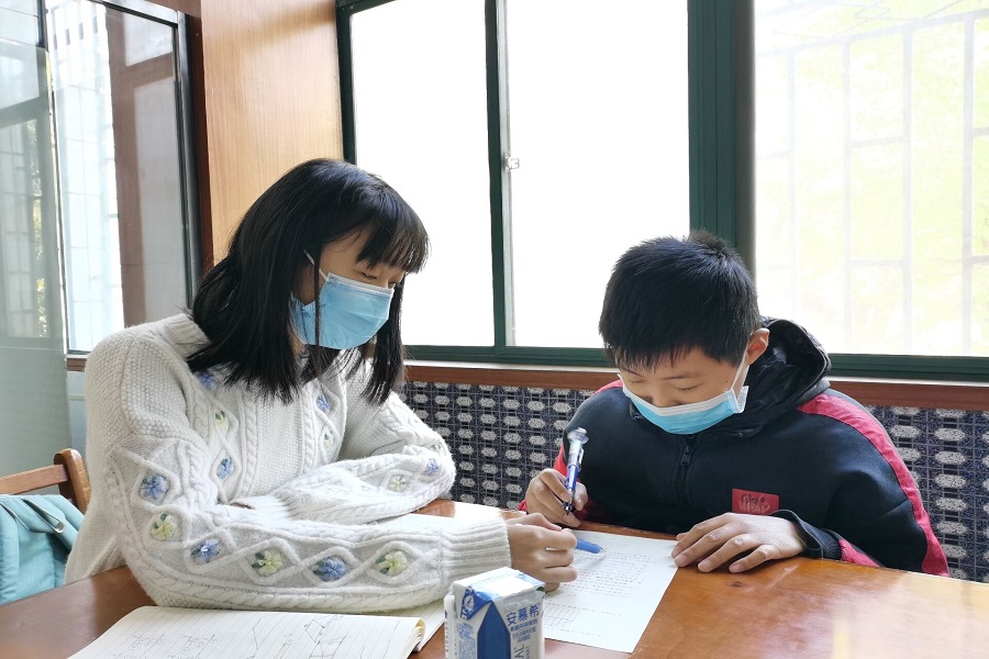 每周六的下午六点,志愿者冷悦都会准时来到东二食堂进行辅导活动。桌子上依次堆放着的各科课本,展现着辅导工作的充实。在志愿者的悉心督促下,小朋友记忆并背诵古诗;在志愿者的耐心讲解下,小朋友克服数学中的难题;在志愿者的谆谆引导下,小朋友朗读英语对话……课余时间,他们一起学习折纸,交流日常生活,不仅增进了感情,也为辅导活动增添了乐趣。小朋友表示,与学校老师相比,志愿者姐姐更加温柔耐心,他非常喜欢这种辅导方式。而对于这次辅导工作,志愿者冷悦表示:“给小朋友讲课和我自己学习是完全不同的过程,我需要将知识点以易于理解的方式讲透彻,这无疑锻炼了我的语言水平和对知识的处理能力。同时,在帮助他进步的过程中,我也体会到了满满的成就感,深切感受到了志愿活动的快乐!”
