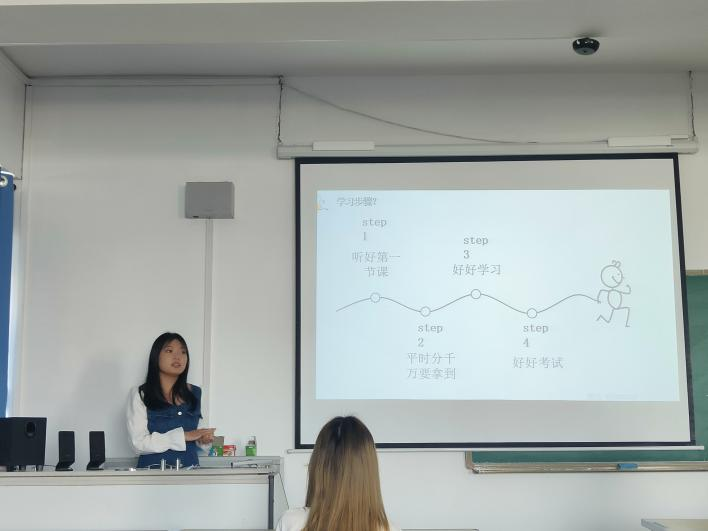 2019级彭瑞学长向同学们推荐了一对一帮扶的最佳场地——图书馆研讨室,并向同学们介绍了借用研讨室的具体步骤和注意事项,同时也鼓励同学们寻找题库、多练题型、找到正确的解题方法。吕中宁学长建议帮扶的同学和被帮扶的同学尽量能够住得近,至少要相互认识,并且要确定好彼此的空闲时间,找到最适合辅导的时间和地点,保障帮扶活动顺利进行。姚林宏学姐建议同学们要听好第一堂课,明确成绩的各项占比,同时确定好自己的考试计划,帮扶的同学和被帮扶的同学要科学学习、共同学习,认真完成作业,不要忽略课堂的学习。