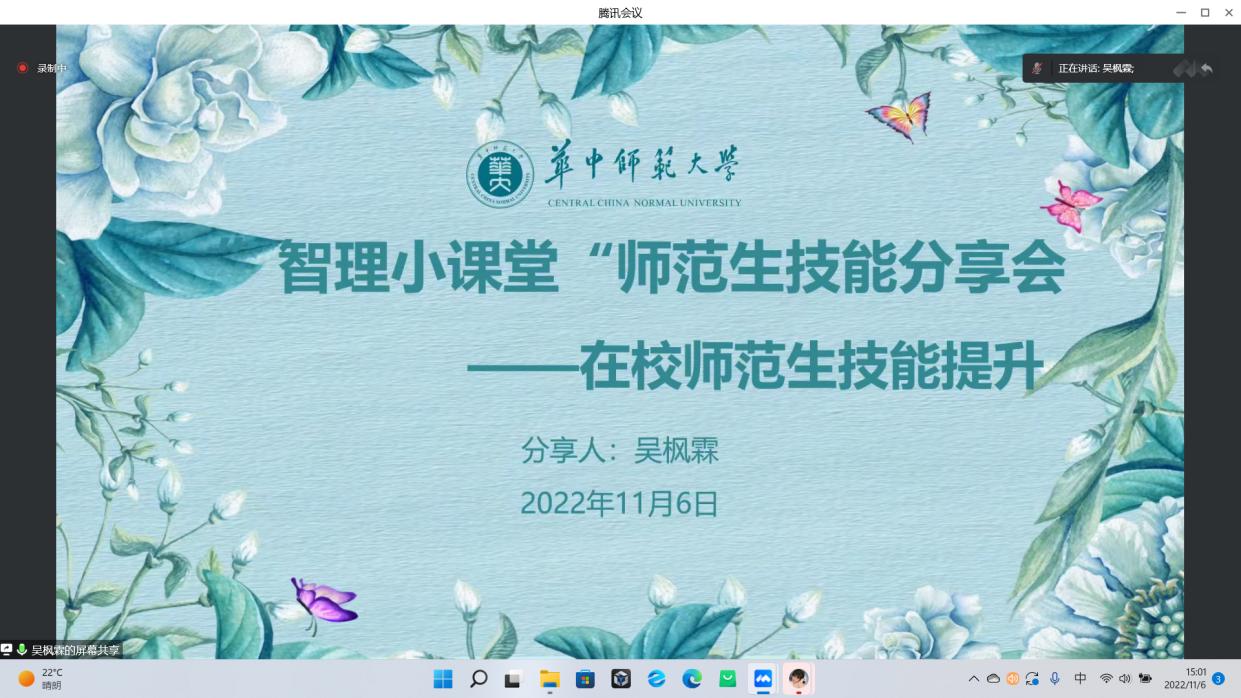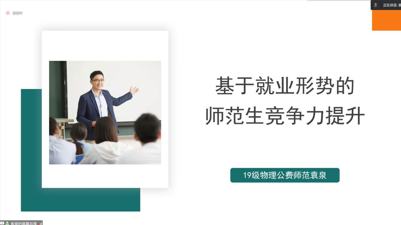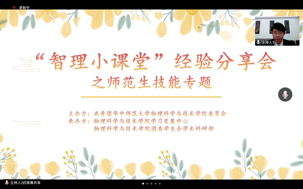 11月上旬,由院团委主办、院学生会学术科研部与学习发展中心承办的“智理小课堂”经验分享会之师范生技能专题在线上顺利开展。本次活动面向物理学院全体师范生,旨在通过经验分享,为大家提升师范技能指明方向。参与分享的主讲人分别是2019级的张陈鑫、吴枫霖和袁泉。