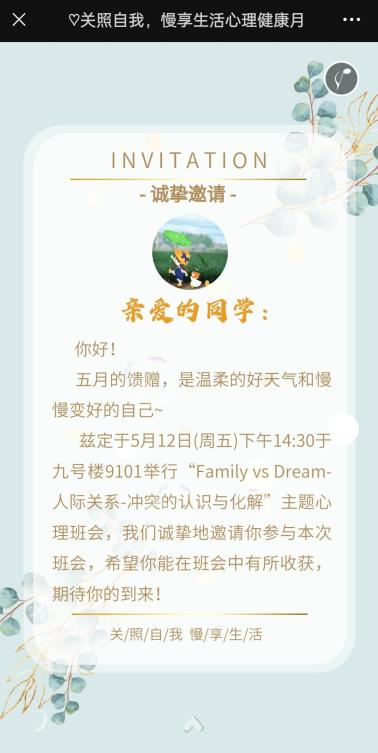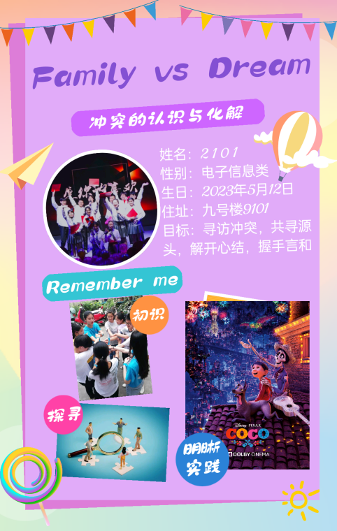 5月12日下午,学院本科2101班于9号楼9101教室开展了“Family vs Dream——人际关系·冲突的认识和化解”主题班会活动,辅导员刘琦参与此次活动,活动由吉素莹主持。