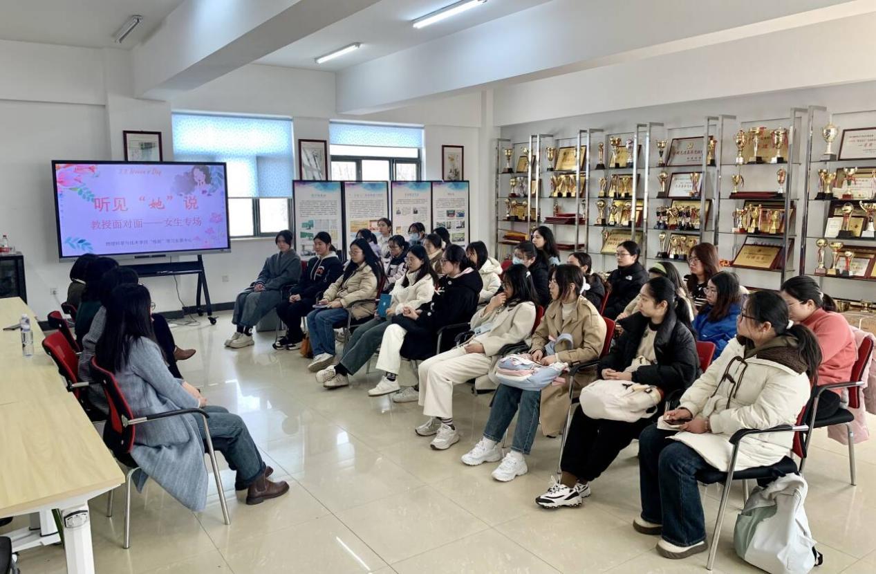 今天通过和四位老师推心置腹的谈话,我感受到了来自于女性和时光沉淀的力量。在与老师们交谈的过程中,我从老师们的自身经历、学识阅历中体会到了温柔、知性、坚定的女性力量,同时也缓解了我在自身发展、未来规划中的一些不安与焦虑。老师们教导我们:不要害怕,大胆尝试,只有努力过了才会有更好的结果。通过今天的对话,我更加坚定了自我的目标与追求,勇敢地奔赴属于自己的未来。