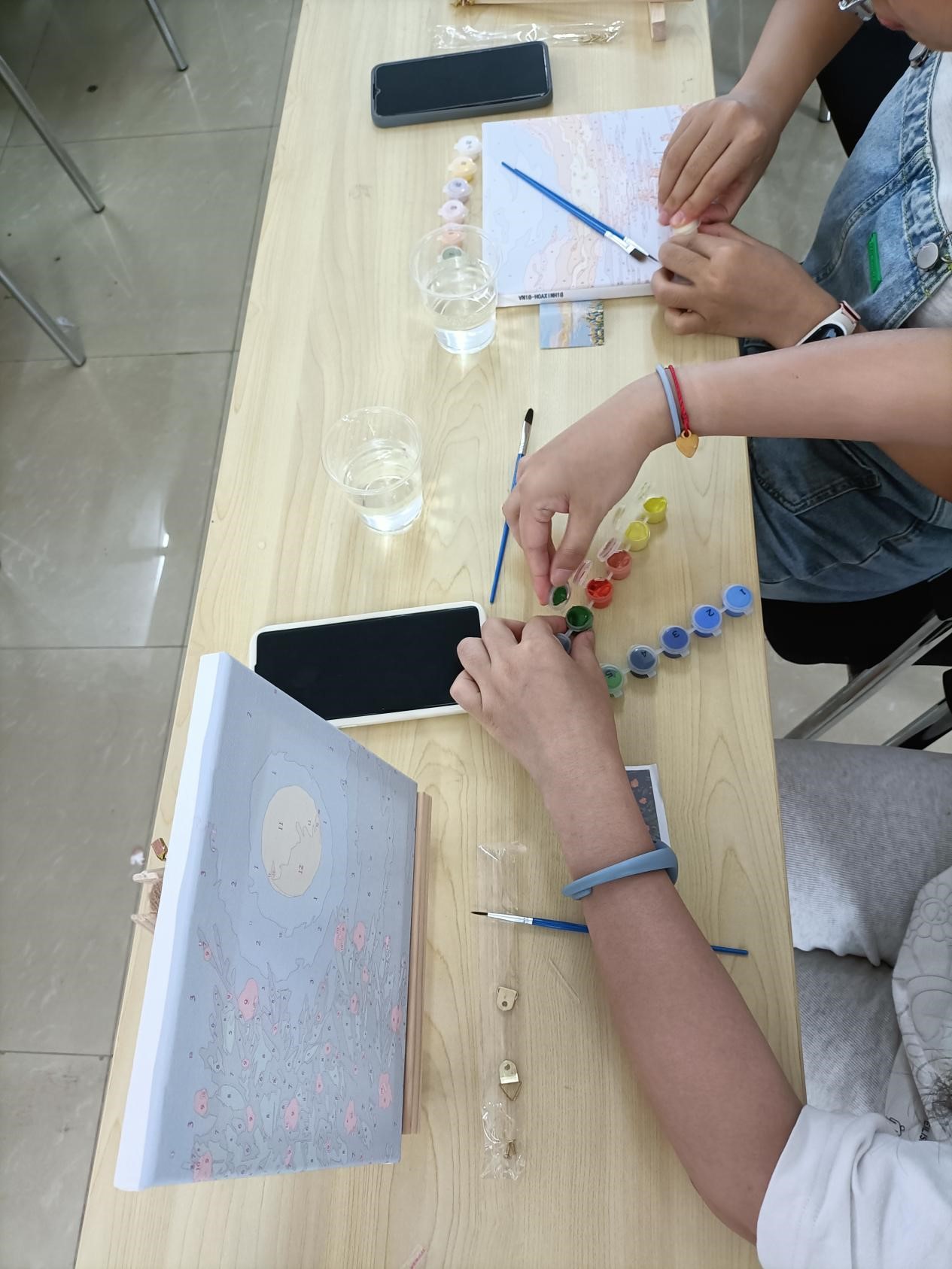 同学们依照讲解,耐心地在细小的区域上填充对应的颜色。随着时间的流逝,同学们手下的笔刷逐渐勾勒出美好的图案。