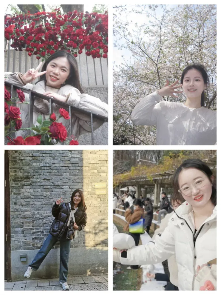 “轻松、愉快、融洽”是509的成员们对寝室氛围的评价。陈瑀回忆道:“我大一大二的时候身体不太好,经常需要买药吃药,她们三人不辞辛劳地去药店帮我买药,照顾我,甚至有几次都是放弃了本就不长的午休时间照顾我,或是凌晨收拾行李送我去医院。我觉得我是很幸运的。第一次过寝室的集体生活就能遇到这样好的室友,她们的真诚、对我的鼓励和帮助给了我向前的动力。”刘雨婷说:“大学一半时间都赶上了疫情,所以我们更加珍惜一起出游的时光。周末我们遍游武汉,到博物馆感受历史,到黄鹤楼登高赏景,到木兰景区赏花游玩;长假里我们一同出行,旅行途中留下了我们的欢声笑语。在这一段段快乐的时光里,我们共同分享生活的点滴,互相倾听和关心,为彼此的友谊和回忆增添了美好的色彩。”