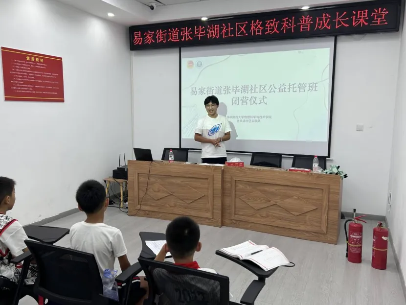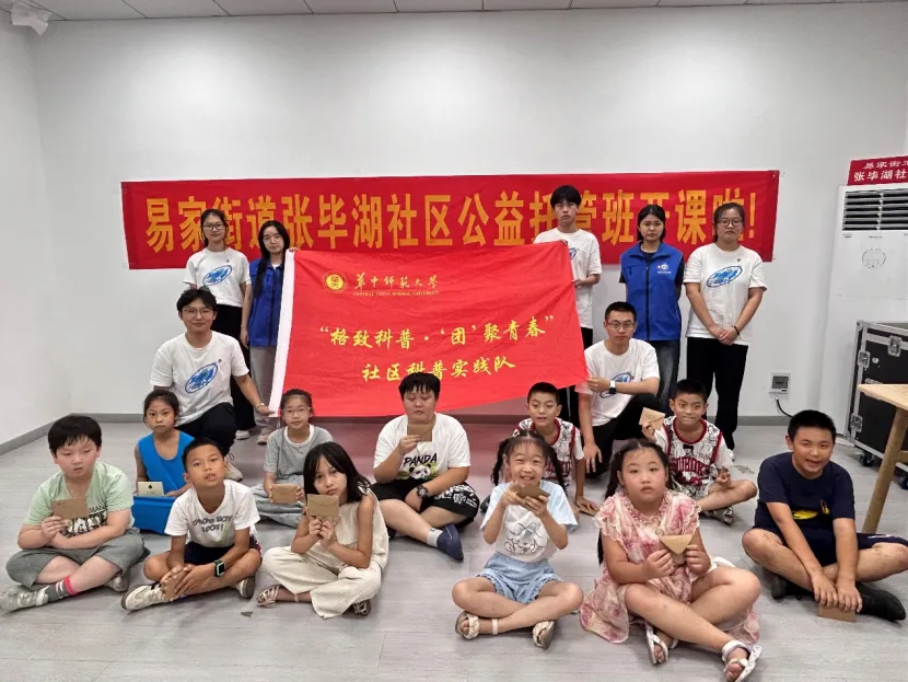 8月23日下午,华中师范大学物理科学与技术学院“格致科普·‘团’聚青春”社区科普实践队张毕湖实践分队(以下简称“实践队”)在硚口区张毕湖社区举办闭营仪式。