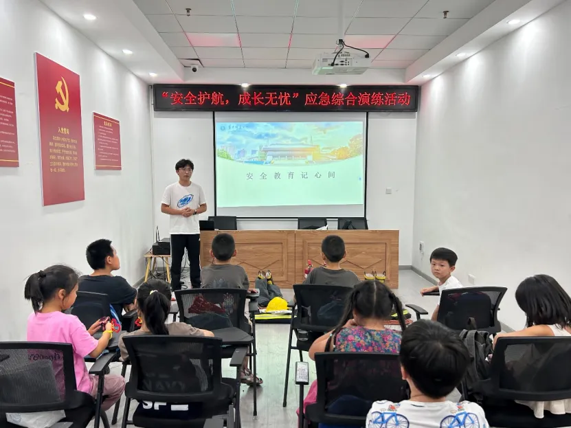 活动伊始,社区负责人许进对本次活动的目的和意义进行了简要说明。实践队队员吴浩宇向小朋友们介绍消防安全的基本概念并进行安全知识互动提问,其中包括火灾的危害性、预防火灾的方法等。