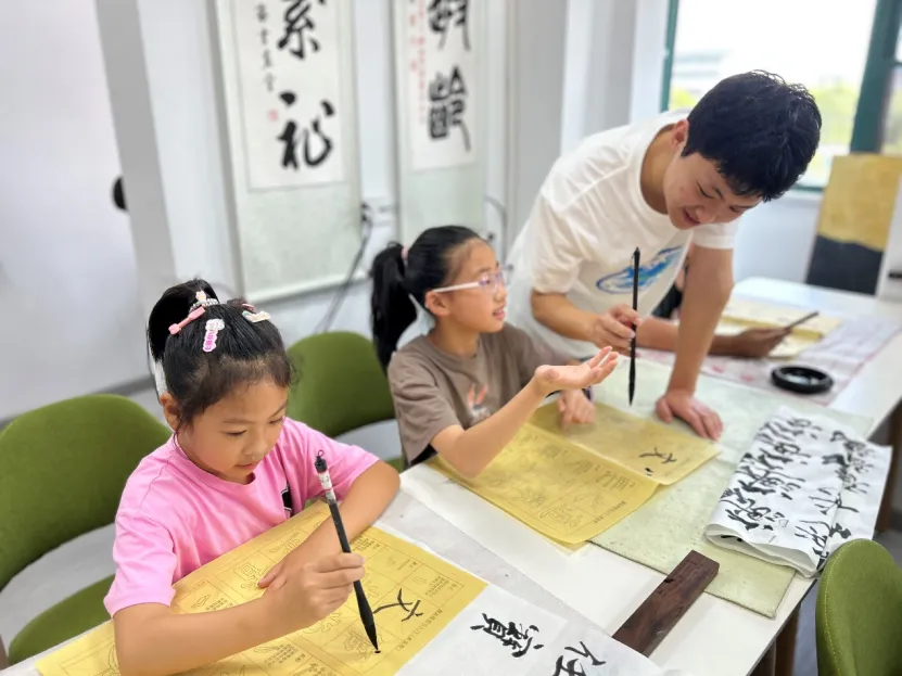 实践致知丨墨香染青春,笔韵传古今:张毕湖社区实践队开展书法体验课堂