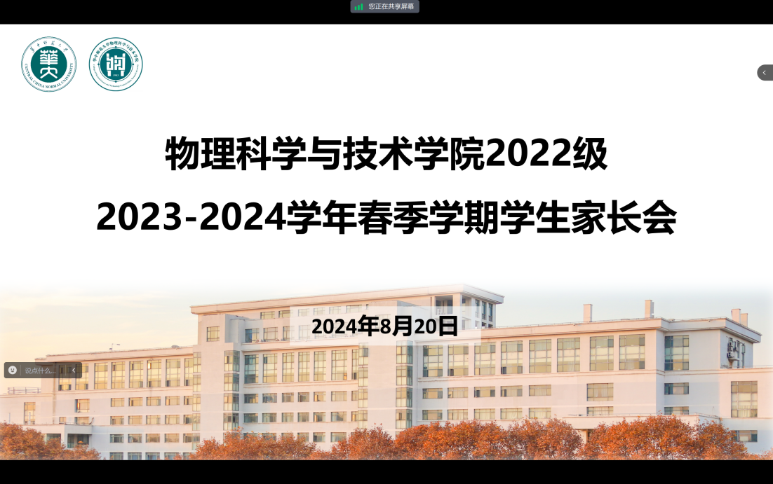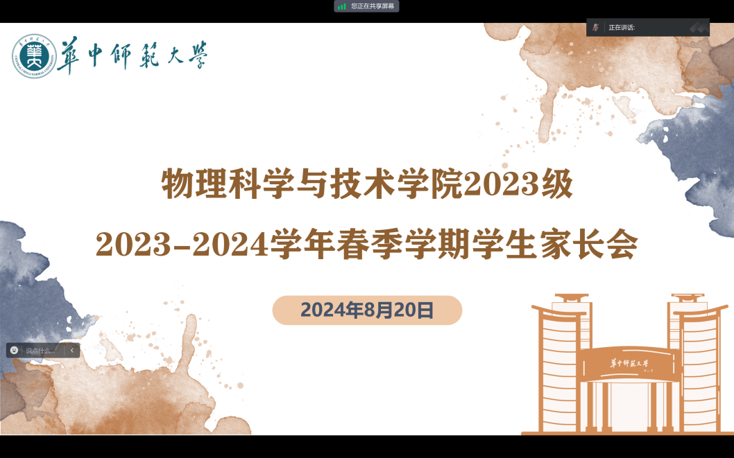 为贯彻落实立德树人根本任务,拓宽思政育人渠道,加强家校合作,促进家校共育,构建学校、家庭全员育人格局,近日,物理科学与技术学院各本科年级顺利召开2024年春季学期学生家长会,学院党委副书记马英、各年级辅导员和各年级学生家长参与会议。