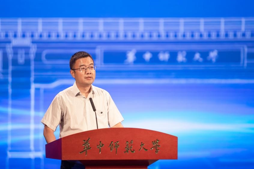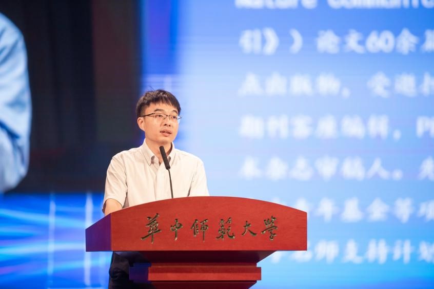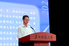 学院生物物理研究所副所长、华中师范大学“十佳青年”称号获得者赵蕴杰教授作为教师代表向新生们分享了自己对于大学生活的理解。他鼓励同学们确立目标,志存高远,积极培养对科学的热爱,主动探索学习,为未来的发展赋能,脚踏实地,迎接挑战。