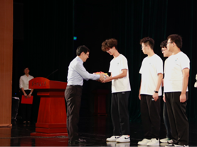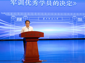 俞云伟副院长宣读《关于表彰 2024 级军训之星、军训优秀学员的决定》,武劲达等10名同学获得“军训之星”称号,李泽彤等74名同学获得“军训优秀学员”称号。副院长吴少平、俞云伟为“军训之星”和“军训优秀学员”代表颁奖。