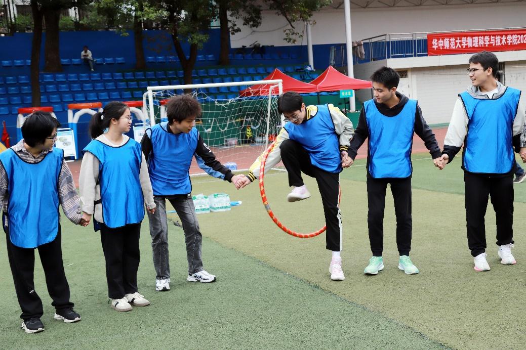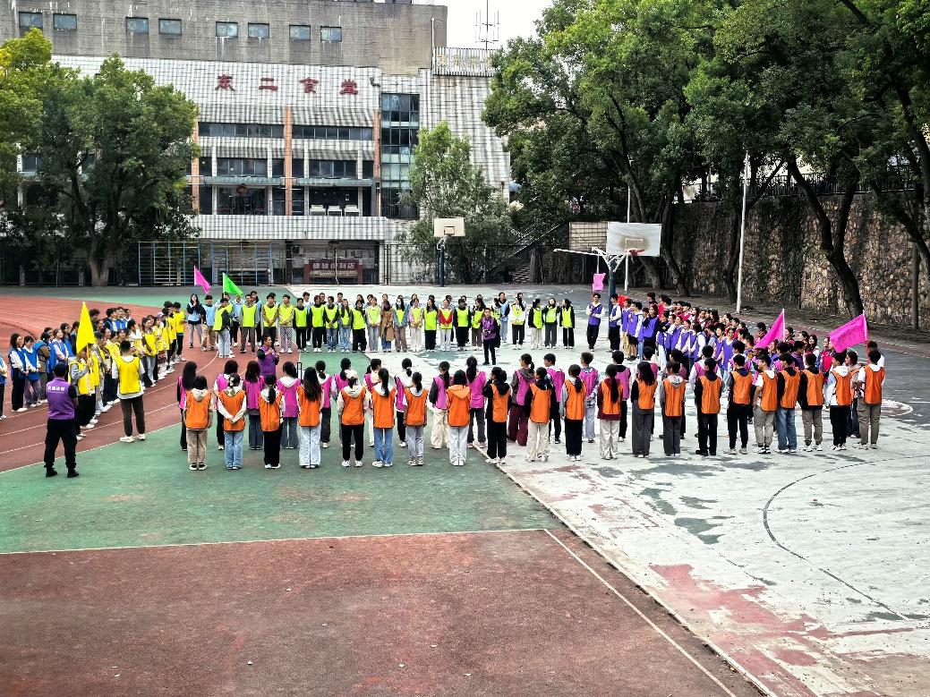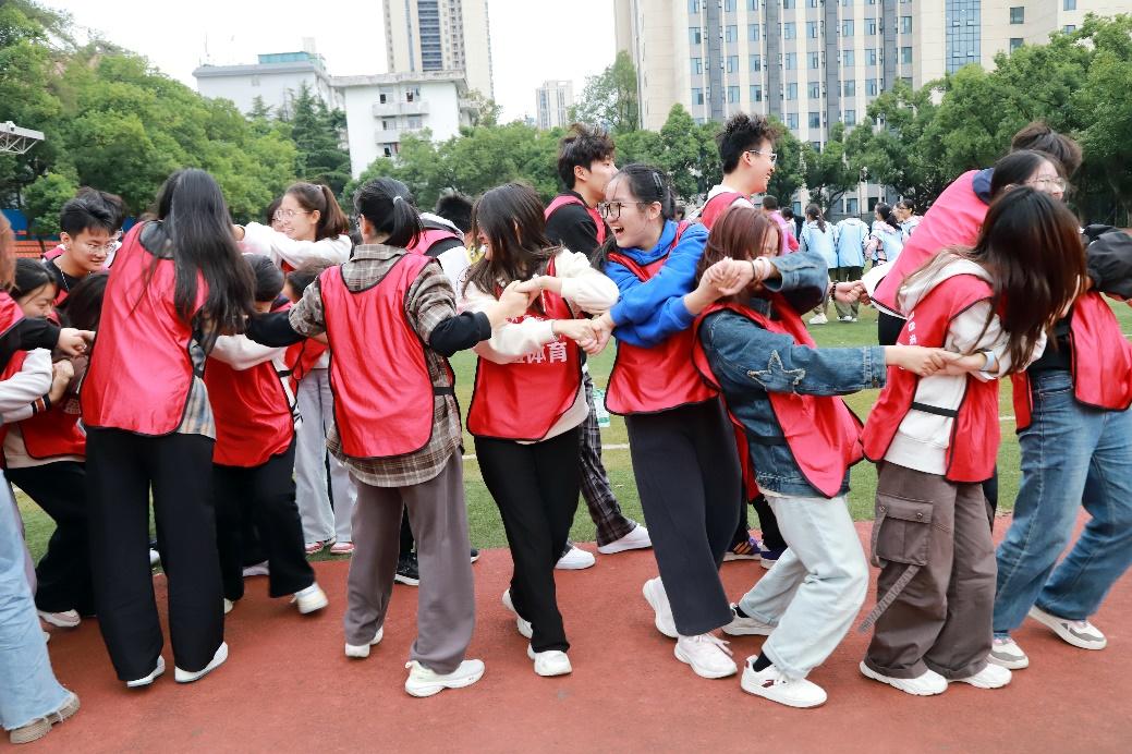 开班仪式结束后,参训团干们移步至高职体育场,开展了一系列紧张而有趣的素质拓展活动。团干们被分为多个小组,挑战了“呼啦圈传递”、“解手链”和“愤怒的小鸟”等游戏。大家齐心协力,共同完成任务,场面热烈非凡。这些活动不仅增强了大家沟通与协作能力,还让同学们体会到了团队精神和集体荣誉感的重要性。
