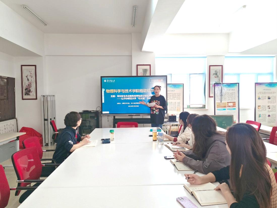 10月25日上午,物理科学与技术学院学工团队在九号楼9551会议室组织开展第6期“格致筑梦”沙龙活动。学院本科生专职辅导员、资助工作联络人崔嘉欣做主题报告,党委副书记马英和本研全体专兼职辅导员参加活动。