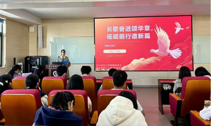 10 月 25 日,学院2402班团支部在9557教室和校史馆开展了“长歌奋进颂华章,砥砺前行谱新篇”主题团日活动,活动由团支书丁菲娅组织并主持。