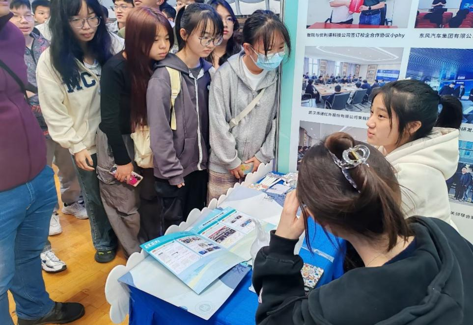 大家首先参观了物理科学与技术学院团委创新创业工作展,展位中展示了近年学院在科创工作方面取得的突出成果,包括强化校企合作促进资源对接、大学生创新创业等内容板块。学院充分发挥学科特色,鼓励学生投身到科技创新的实践中,在多项竞赛中取得了优异的成绩。同学们认真聆听,并就感兴趣的方向领域与在场的老师进行探讨交流。