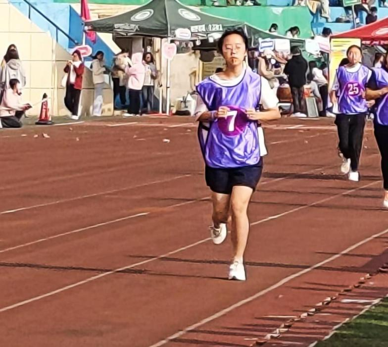 熊悠然在赛前训练时坚持不懈地奋斗,积极地追求目标,收获了快乐、充实了自我。三千米漫长时光中,陪跑志愿者为她加油打气,物院大本营的同学们喊出整齐有力的口号,她意识到“我不是在孤军奋战”,这使她最终坚持完成了比赛,给物院增光添彩。