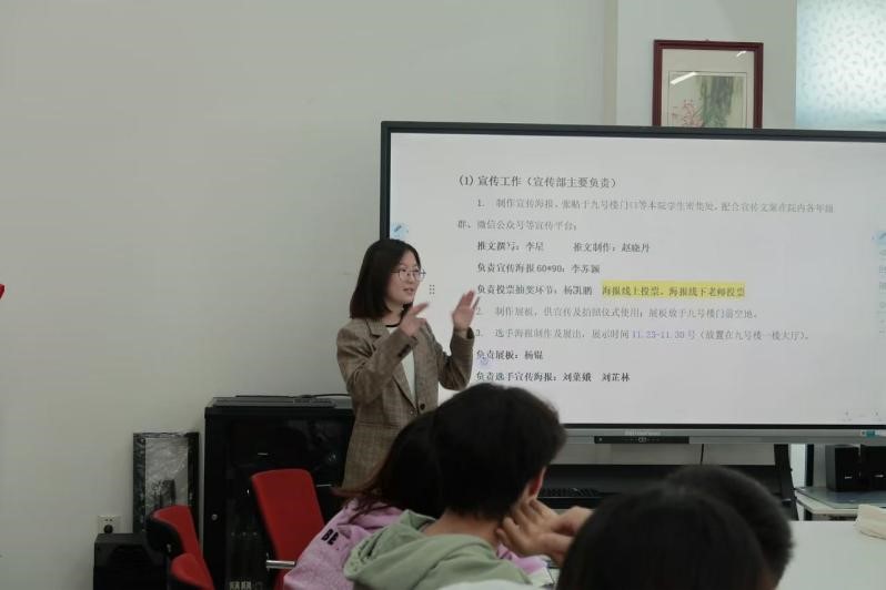 随后,三位主席团成员分别报告了自己部门的活动进展。王秋革希望各部门能够积极思考,勇于创新,努力举办更具吸引力的活动。苗婕妤着重指出了活动期间学生的安全问题。